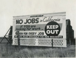 With no place else to go and lured by the promise of jobs picking fruit and cotton in the Central Valley of California, thousands of mid-westerners, derisively called "Okies" or "Arkies", because many of them hailed from Oklahoma and Arkansas, piled their meager possessions on their aging cars and trucks and set off for the "promised land".