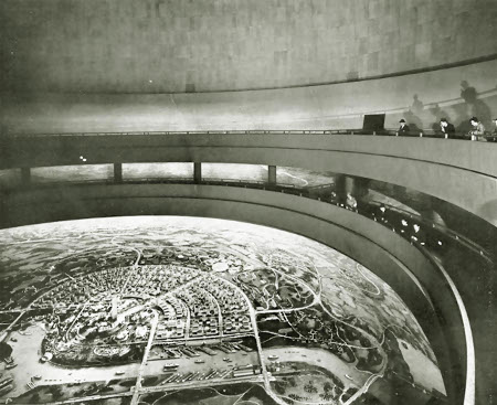 Visitors to the Perisphere passing above Democracity on a moving walkway